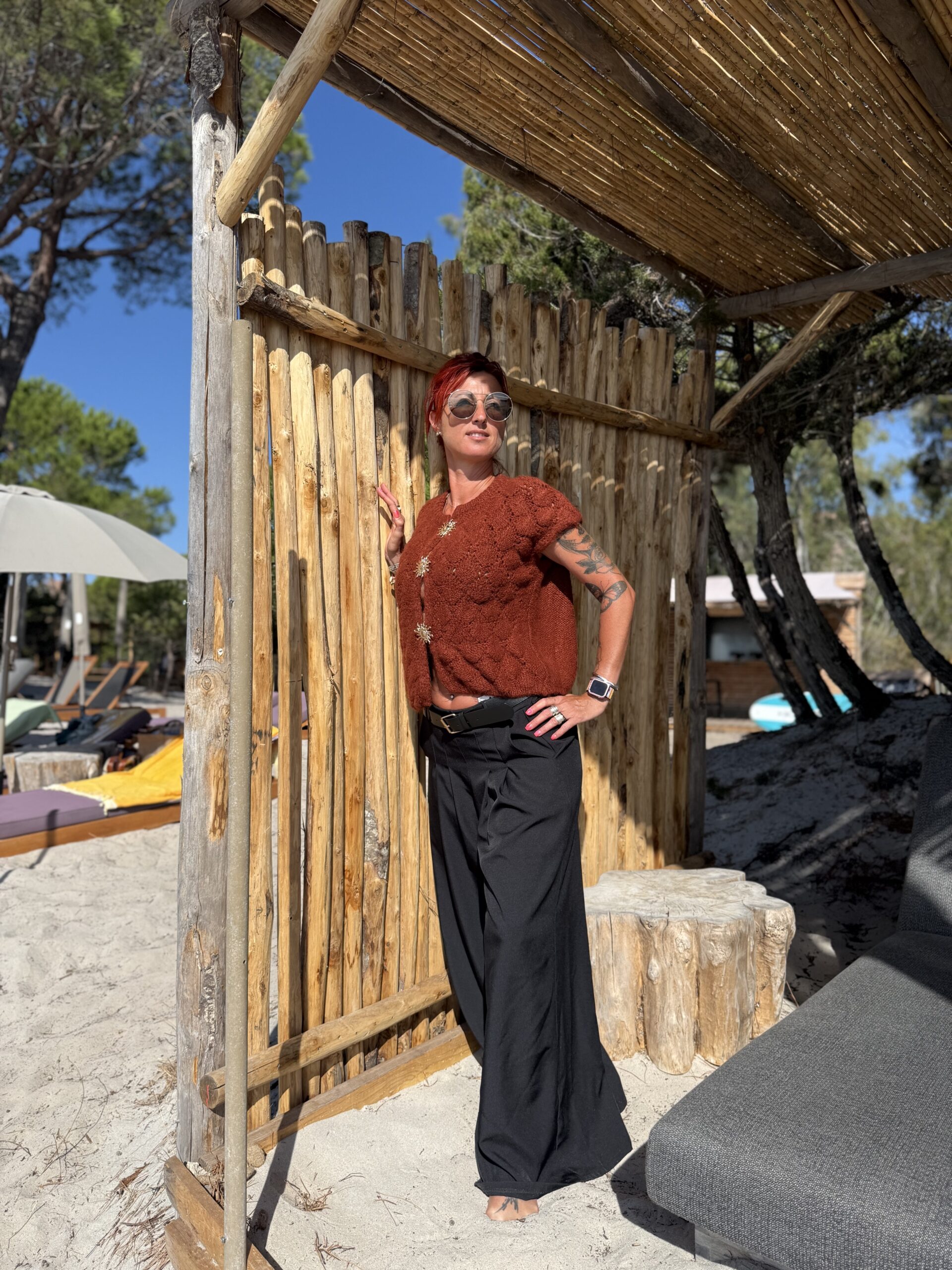 - Sa coupe confortable et légèrement loose, parfaite sur un jean flare ou une robe fluide.