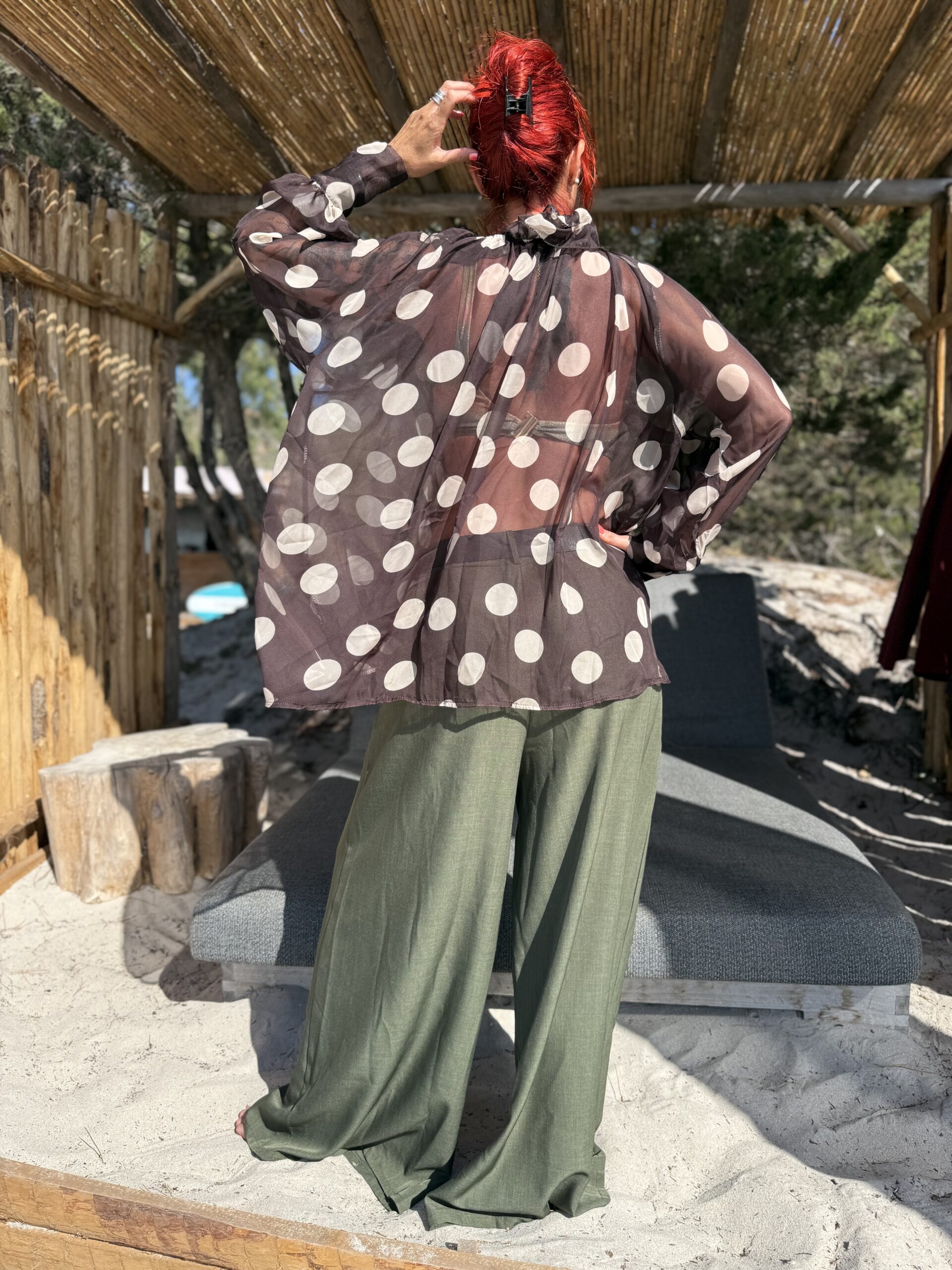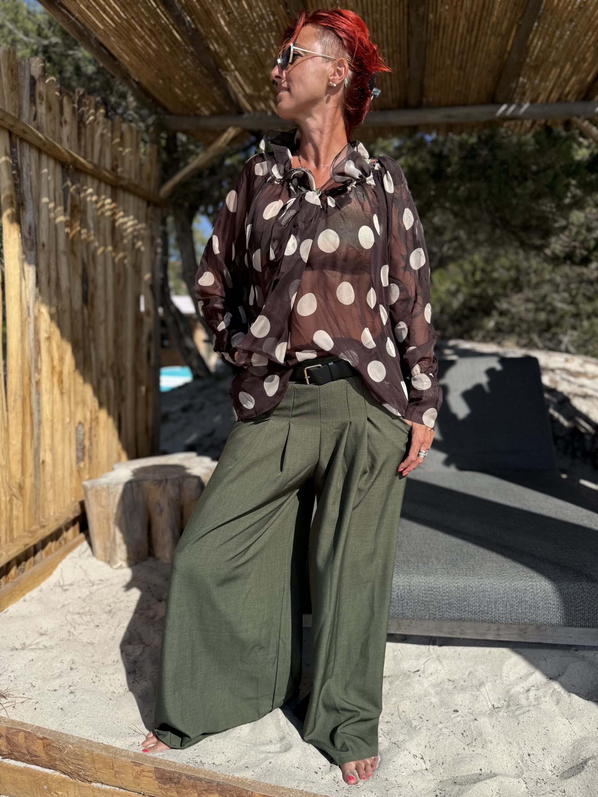 Sa coupe ample et fluide apporte confort et élégance, tout en sublimant la silhouette avec un tombé naturel. Sa teinte kaki intemporelle s’associe facilement à toutes vos blouses bohèmes, tops légers ou vestes en jean.